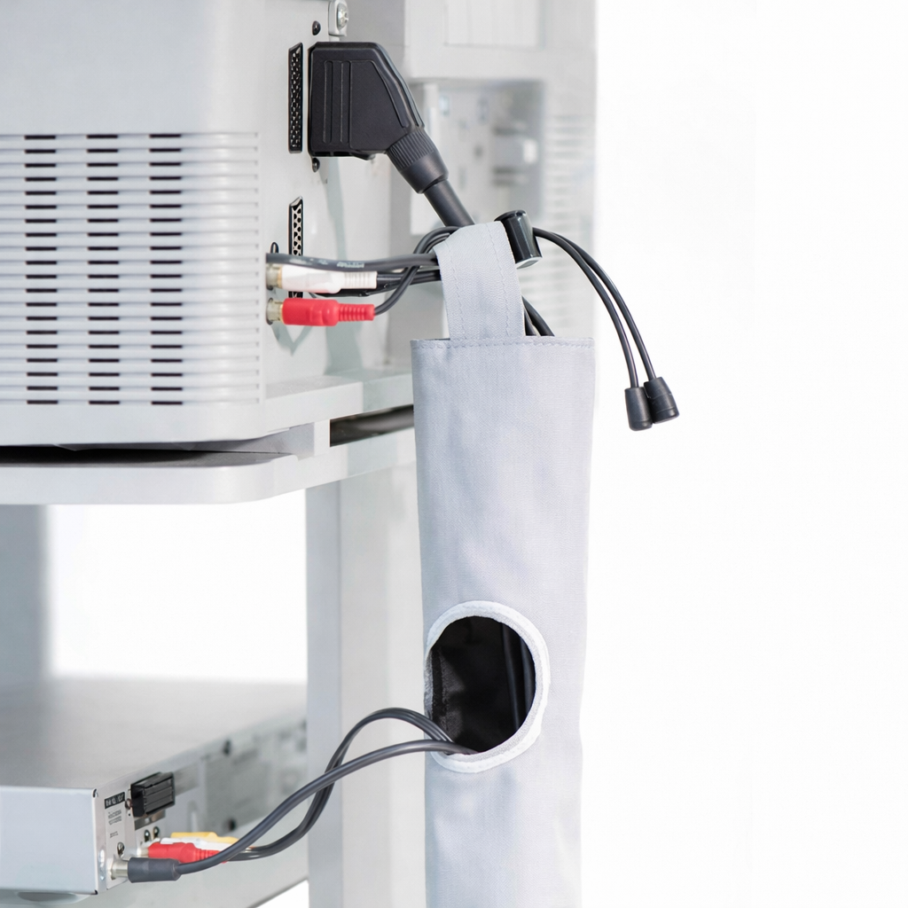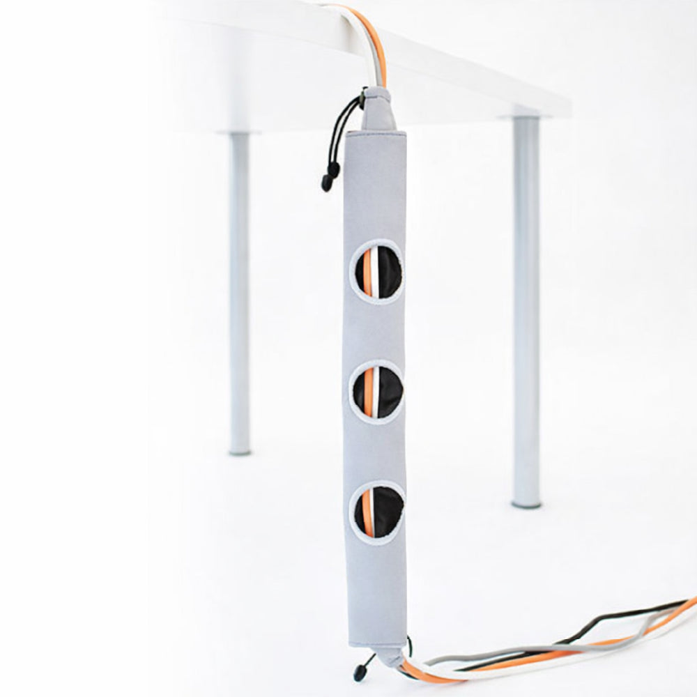 Constructed from durable fabric, the sleeve features multiple access points along its length, allowing cables to be routed in and out cleanly without strain. A reversible zip lets the sleeve open fully for straightforward installation, while drawstrings at both ends pull the tidy closed once cables are in place.